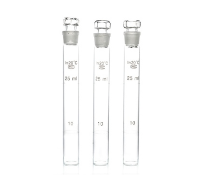 Tabung ini memiliki tutup kaca berongga (glass hollow stopper) yang dirancang presisi untuk menjaga kebersihan, mencegah kontaminasi, dan menjaga kestabilan sampel selama proses pengukuran. Setiap tabung juga dilengkapi dengan kalibrasi volume akurat (In 20°C) untuk memastikan hasil pengukuran yang tepat dan konsisten.