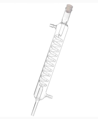 Condenser with Bulbed Inner Tube Allihn Boro 3.3 Glass adalah salah satu jenis kondensor laboratorium yang banyak digunakan dalam proses destilasi, refluks, dan pemanasan berulang di laboratorium kimia. Kondensor ini dikenal juga sebagai Allihn condenser atau bulb condenser, yang memiliki tabung dalam bergelombang (bulbed) untuk memperluas permukaan pendingin. Permukaan yang lebih luas ini membantu kondensasi uap lebih efisien, cocok untuk eksperimen refluks atau destilasi yang memerlukan pendinginan intensif.