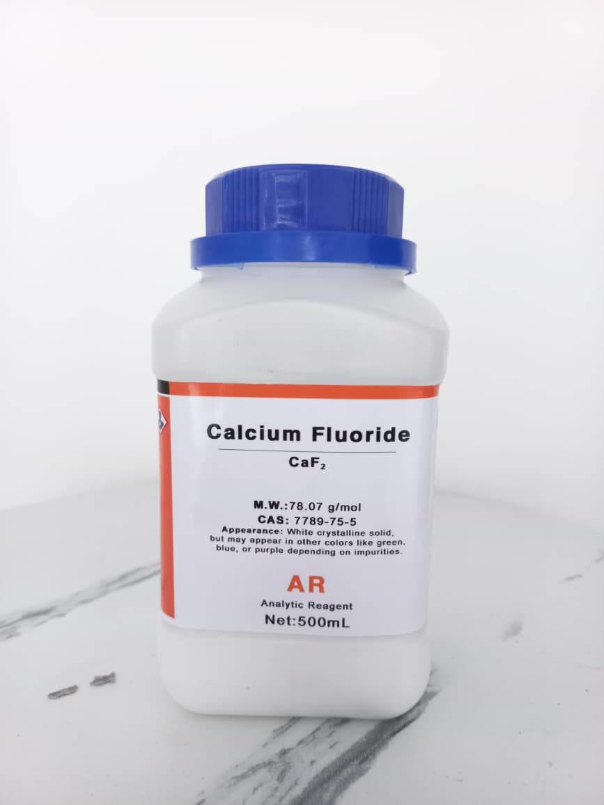 Calcium Fluoride (CaF₂) adalah senyawa anorganik berbentuk padatan kristalin putih yang secara alami dikenal sebagai fluorit. Senyawa ini memiliki rumus kimia CaF₂ dengan berat molekul 78,07 g/mol dan CAS Number 7789-75-5. Produk ini tergolong Analytic Reagent (AR Grade) yang sesuai untuk berbagai aplikasi analisis laboratorium dan riset.