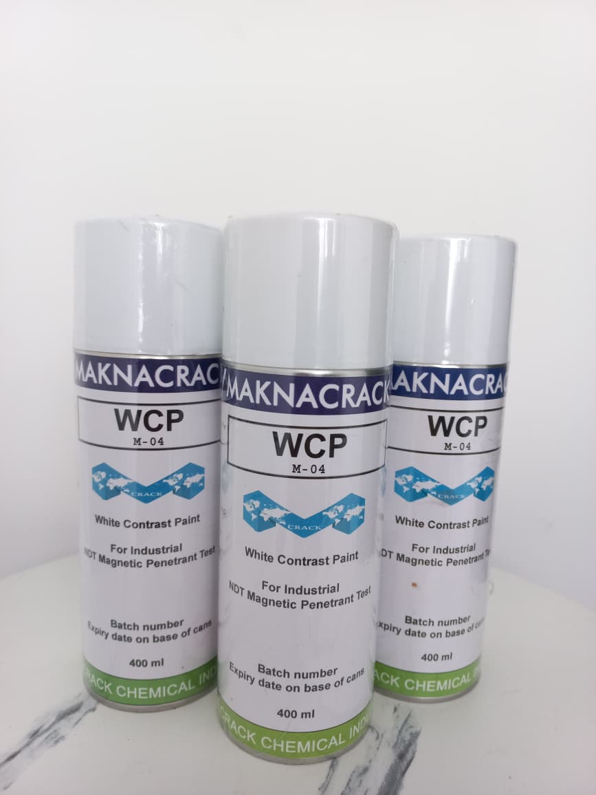 Maknacrack WCP M-04 adalah white contrast paint (cat kontras putih) yang dirancang untuk pengujian non-destruktif (NDT) dengan metode Magnetic Penetrant Testing. Cat kontras putih ini berfungsi sebagai lapisan dasar yang meningkatkan visibilitas partikel magnetik pada permukaan material ferromagnetik sehingga memudahkan deteksi retakan atau cacat mikro secara lebih akurat.