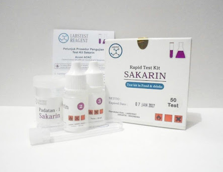 Reagen Kit Sakarin adalah alat uji cepat (rapid test kit) yang dirancang khusus untuk mendeteksi kandungan sakarin dalam makanan dan minuman. Kit ini dapat digunakan untuk mengidentifikasi apakah suatu produk mengandung sakarin, sebuah pemanis buatan yang sering digunakan dalam berbagai produk makanan dan minuman.