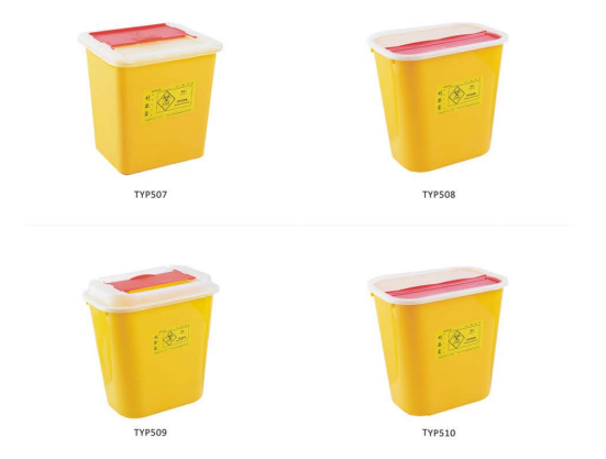 Sharp Container seri CNWTC TYP501–TYP510 hadir dalam berbagai ukuran dan bentuk untuk menyesuaikan kebutuhan pengguna. Seluruh varian memiliki ciri khas warna kuning dengan tutup merah, menandakan kategori limbah medis berbahaya (biohazard).