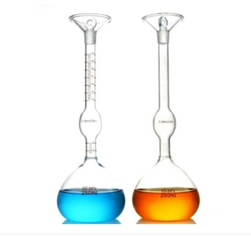 Dilengkapi dengan penutup kaca ground-in (ground glass stopper) yang pas dan kedap udara untuk mencegah kebocoran cairan saat proses pengukuran. - Kapasitas dan Skala Jelas