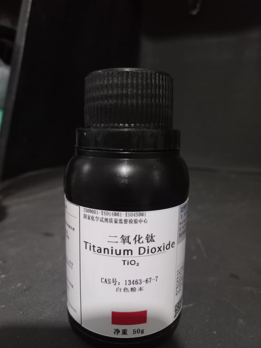 Titanium Dioxide sering dipakai dalam penelitian sebagai fotokatalis untuk degradasi polutan atau material energi terbarukan.