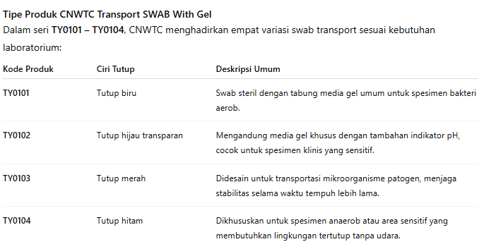Transport SWAB With Gel – CNWTC banyak digunakan dalam: